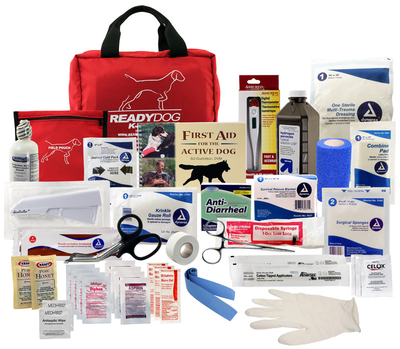– A list of the contents of your first-aid kit. For each of the drugs in the kit, have a note indicating the appropriate dose for each of your dogs. That way, you won’t have to do any calculations in your head in a time of crisis. When preparing the kit, be sure to check the doses with your veterinarian.