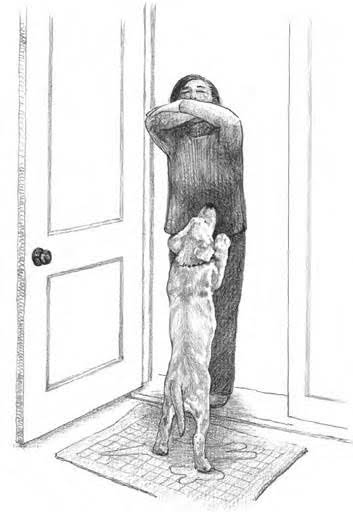 – Come home and ignore your puppy until he’s given up the jumping vigil.