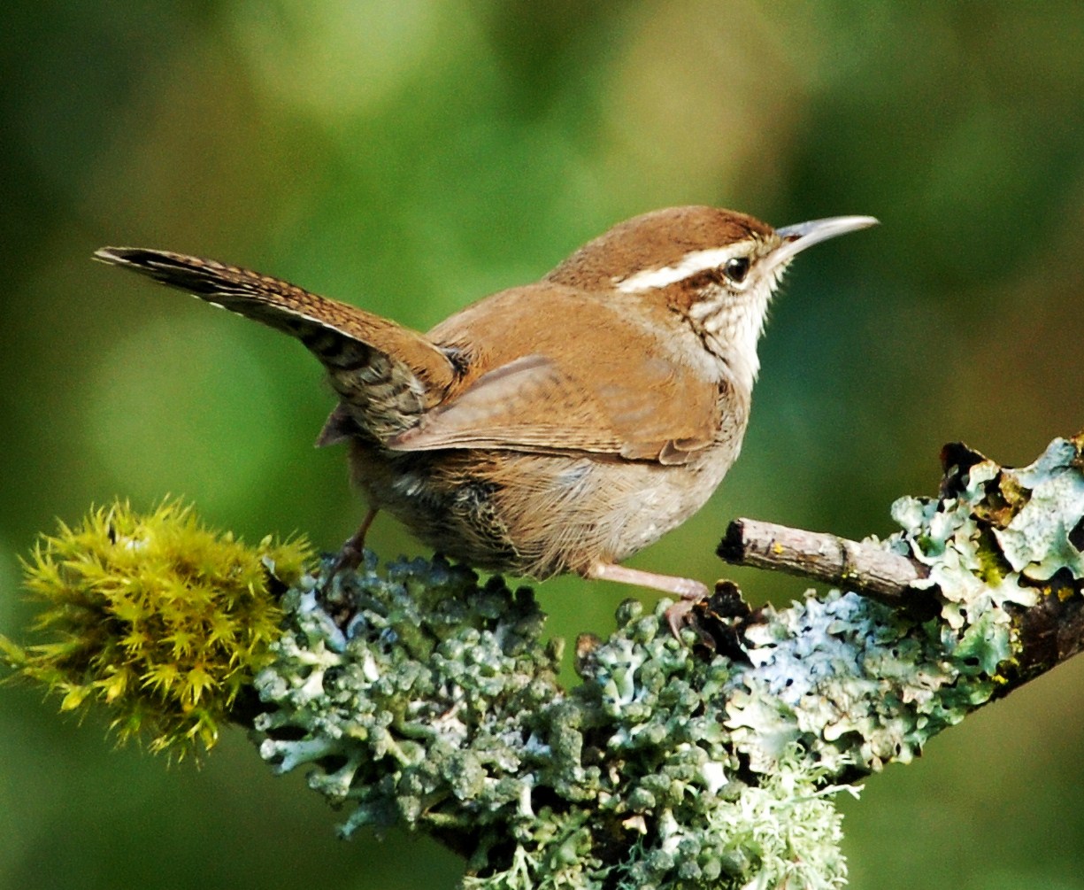 Bewick’s wrens have a very large breeding range and a global population estimated at 6 million individuals. Populations in the eastern United States have declined severely and are nearly gone, with only a few scattered breeding locations left. However, this species has greatly increased in number and range in the western United States, so the overall population trend was stable over the last 40 years.