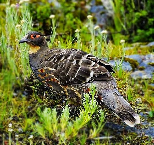 The buff-throated partridge is found in high-altitude habitats including fir and oak forests and grasslands and scrublands above the treeline, also using rocky areas. They are present at altitudes of 3.300-4.600 m.