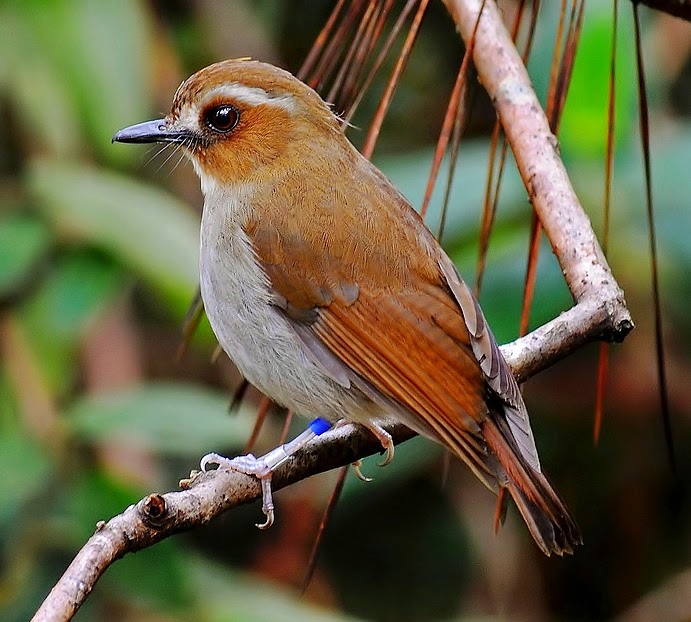 The eyebrowed jungle-flycatcher is found in mountain rainforests, at altitudes of 900-3.300 m.
