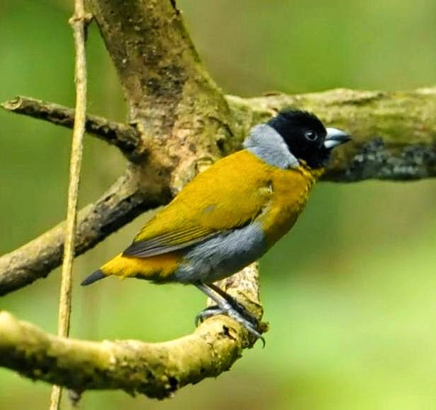 Fernando Po oliveback (en); olivinha-de-rabo-curto (pt); dos-vert à tête noire (fr); olivino carinegro (es); meisenastrild (de)