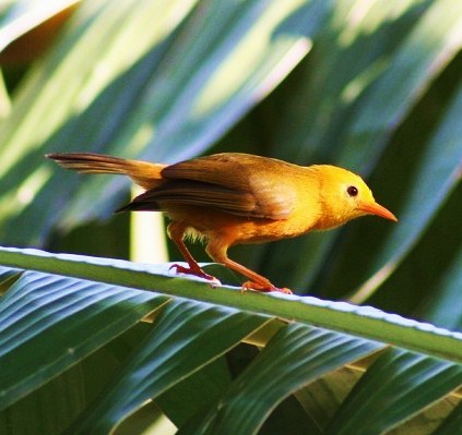 It forages predominantly in the foliage of trees, particularly Cynometra ramifolia, feeding on invertebrates, flying insects, nectar, fruit and flowers and also taking insects from tree bark.