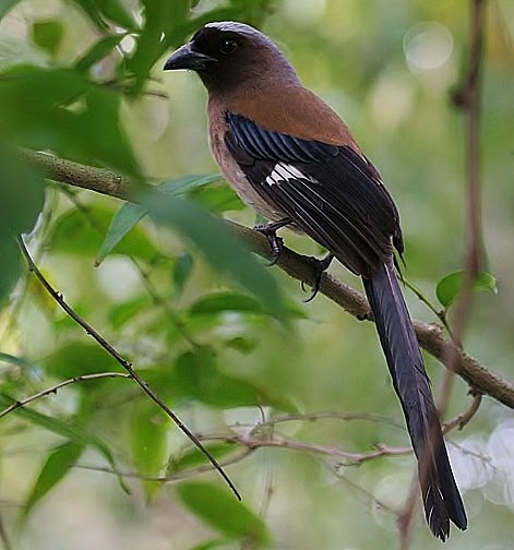 grey treepie (en); pega-arbórea-cinzenta (pt); témia de Swinhoe (fr); urraca gris (es); graubrust-baumelster (de)
