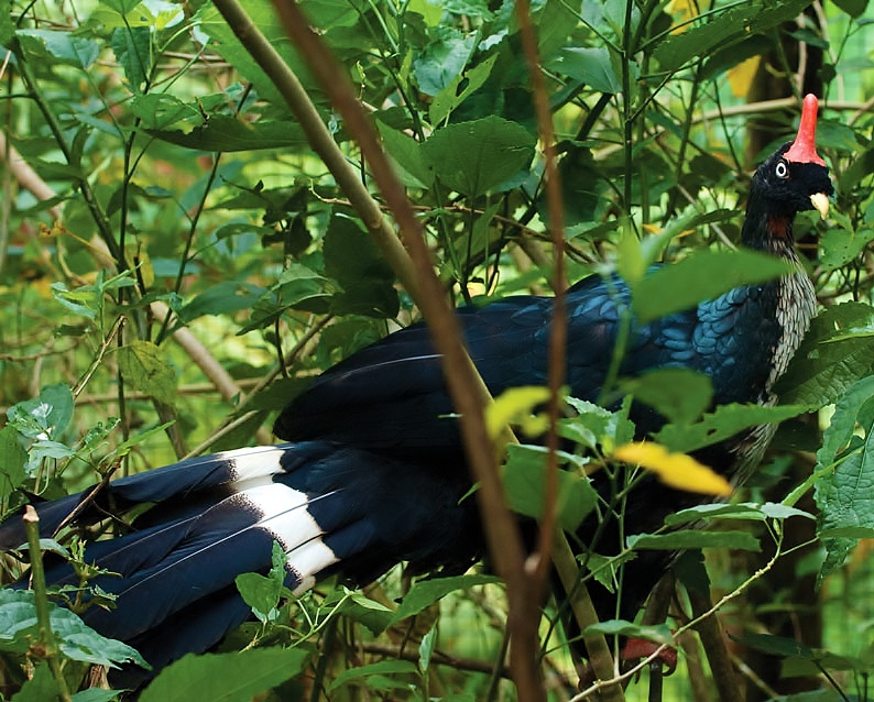 The horned guan is found in cloud forests with luxuriant undergrowth, at altitudes of 2.000-3.500 m.