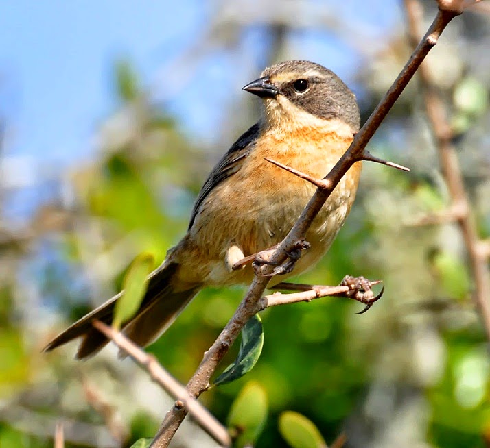 The long-tailed reed-finch is mostly found in marshes and reedbeds with tall emergent vegetation such as Typha, Eryngium, Scirpus, also using wet grasslands and moist scrubland. They occur from sea level up to an altitude of 1.000 m.