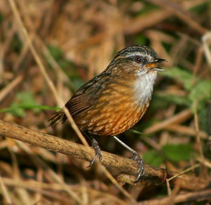 The mountain wren-babbler is found in dense, moist tropical forests, mainly in mountainous areas, but also at lower altitudes.
