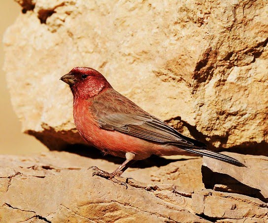 The pale rosefinch is mostly found in arid, rocky deserts in mountainous areas. They occur is wadis, gullies and ruins, passing to plateaus and dunes dotted with bushes in winter, but always in areas with access to water. They are found at altitudes of 2.000-3.350 m.