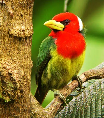 The red-headed barbet is 15 cm long and weighs 34 g.
