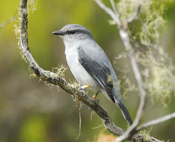 The Reunion cuckooshrike is strictly associated with closed-canopy natural forest, occurring in mixed evergreen subtropical forest that also often includes areas of heath Philippia montana and tamarin Acacia heterophylla. Sometimes they wander into nearby plantations. They are found at altitudes of 1.000-1.800 m.