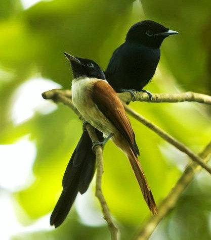 The Seychelles paradise-flycatcher has an extremely small breeding range and the global population in currently estimated at just 210-280 individuals. The species is mostly threatened by the alarming rates of habitat loss and fragmentation, due to tourism and private housing developments but also because of a wild disease affecting takamaka stands. Nest depredation by alien mammals is another significant threat. Conservation measures, namely habitat restoration, the protection of water quality in the wetlands and pest elimination has lead the population to recover from an historic minimum of 50-60 individuals in the 1980s and the current population trend seems to be stable.