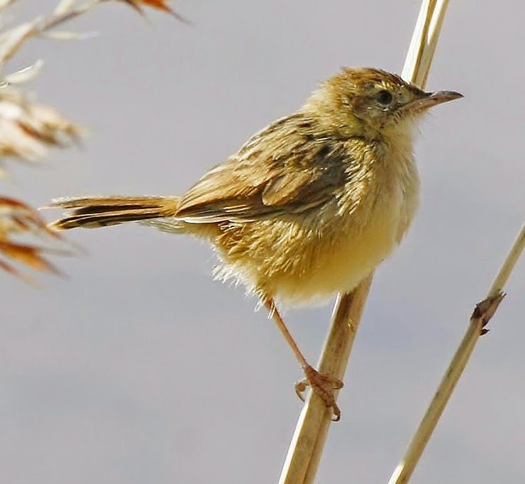 Siffling cisticolas breed in November-April. The nest is a compact sphere with a side entrance, made of dry grass and leaves reinforced with spider webs. It is typically placed very near the ground in a grass tuft or small scrub. The female lays 2-4 eggs, which she incubates alone for about 14 days. the chicks fledge about 17 days after hatching.