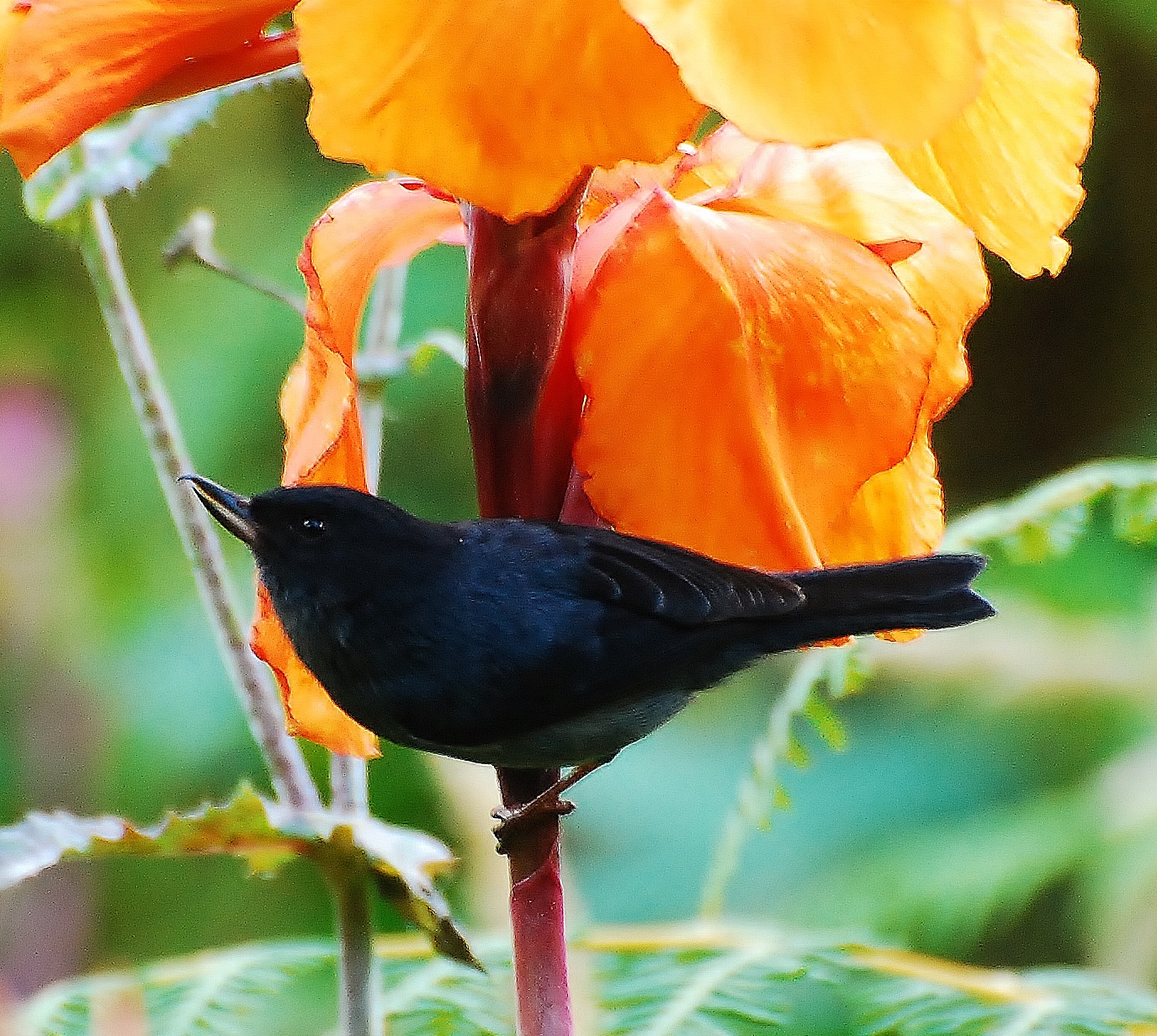 The slaty flowerpiercer is mostly found in high-altitude moist tropical scrublands, but also in in clearing and along the edges of mountain tropical forests, second growths and arable land. They are present at altitudes of 1.200-3.300 m.