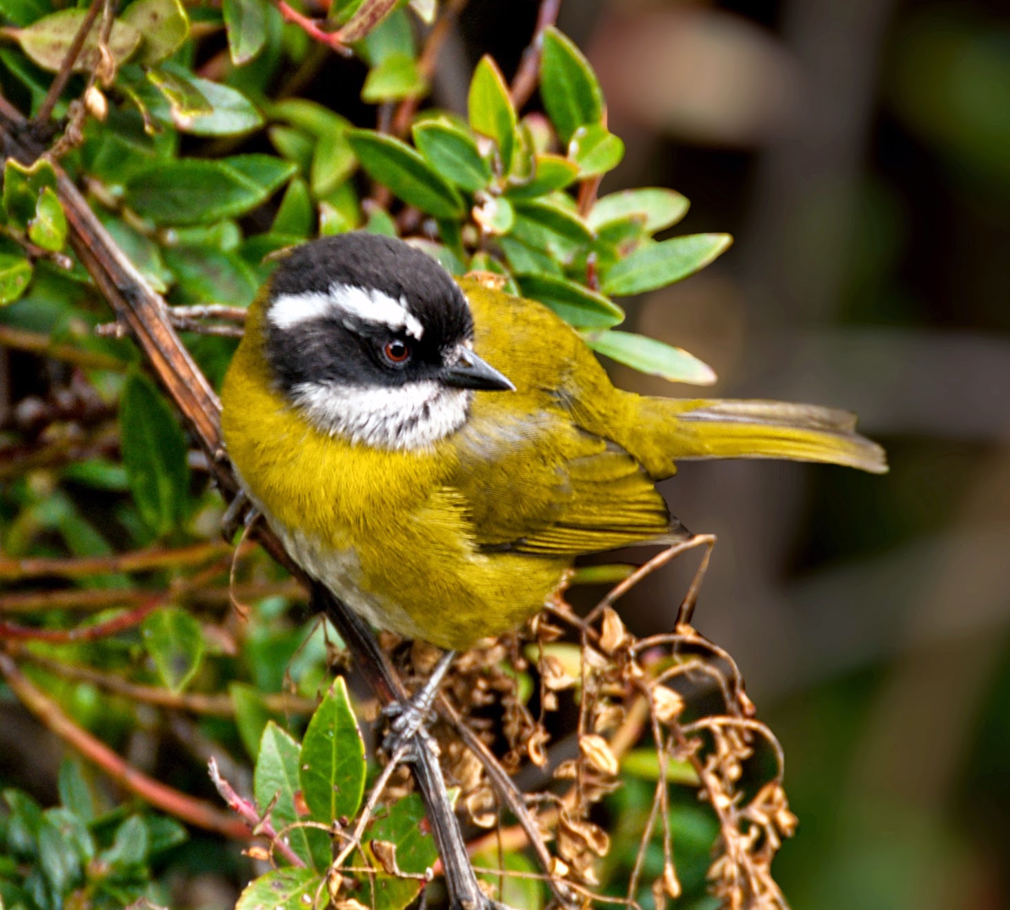 The sooty-capped bush-tanager is mostly found in mossy, moist and wet mountain rainforests, and elfin forests, also using tall second growths and high-altitude scrublands. They occur at altitudes of 1.500-3.000 m.