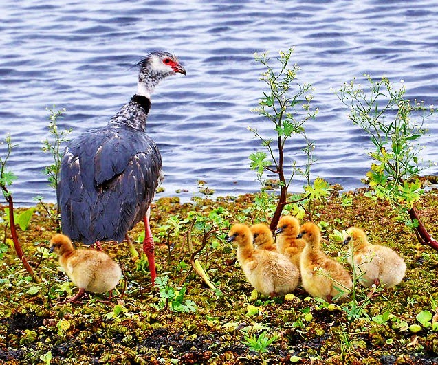 The diet of the southern screamer consists of plants stems, seeds, leaves, and, rarely, small animals.