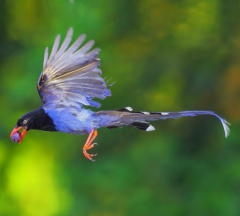 The Taiwan magpie is found in moist broadleaved forests, at altitudes of 300-1.200 m.