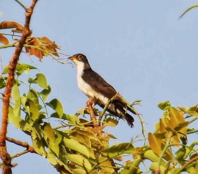 Thick-billed cuckoos are polygamous and brood parasites. They breed in September-April. After mating the female lays 1 egg on the nest of the host, almost invariably the Retz’s helmetshrike Prionops retzii. The egg is incubated by the hosts for 13 days. The chick ejects any other eggs or nestlings within 4 days of hatching. It is fed by the hosts and fledges 28-30 days after hatching but only becomes fully independent some 50 days later.