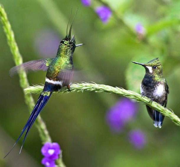 The wire-crested thorntail is found in moist tropical forests at altitudes of 400-1.200 m.