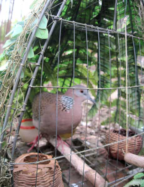 Thấy có khách tới chơi nói chuyện về loài chim cu gáy, ông hồ hởi kể: “Con “8/3”- ông Sâm bẫy được tại phố 8/3” – (PV) “giọng thổ rền” chỉ là một trong hàng chục chú chim gáy mà ông bẫy được. Ông Sâm mê chim cu gáy như điếu đổ, sống quá nửa đời người thì gần như ông dành trọn để gắn bó với loài chim đồng quê này.