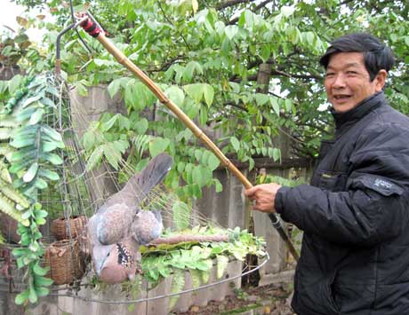 Mê chim cu gáy như vậy nên với ông Sâm, lịch trình một ngày cho “công tác” nuôi chim của ông đã chiếm khá nhiều thời gian. Buổi sáng, buổi chiều, đi luyện chim ở một địa điểm nhất định. Buổi trưa, tranh thủ tắm cho chim. Ngoài ra là thời gian cho chúng ăn, vệ sinh chuồng… Nhìn chung, một ngày ông Sâm mất ít nhất bốn, năm tiếng đồng hồ. Đó còn chưa tính đến những chuyến đi xa nhiều ngày khỏi Hà Nội để “săn – bẫy” những chú chim hay.