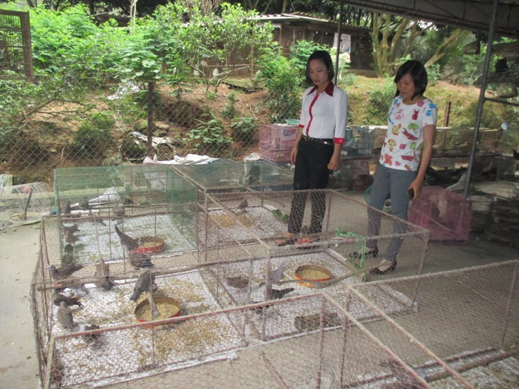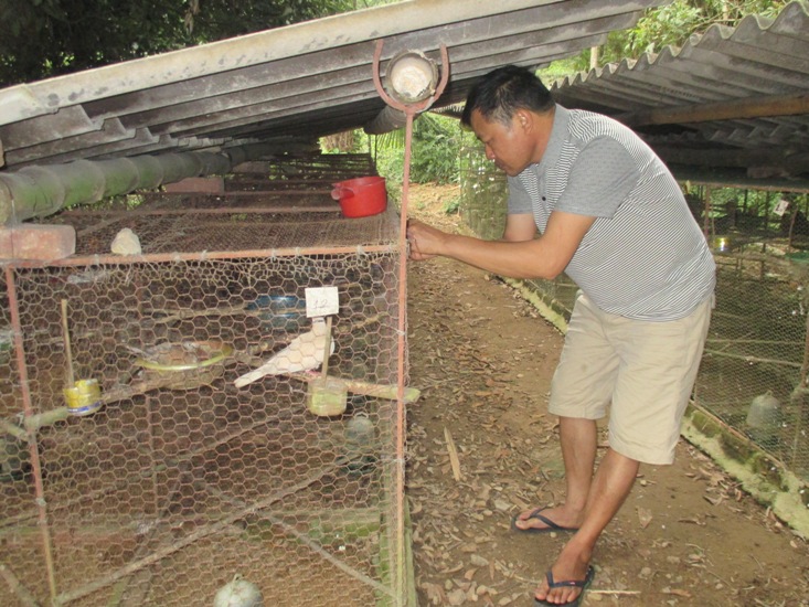 Cán bộ khuyến nông huyện thăm mô hình nuôi chim cu gáy của ông Lĩnh