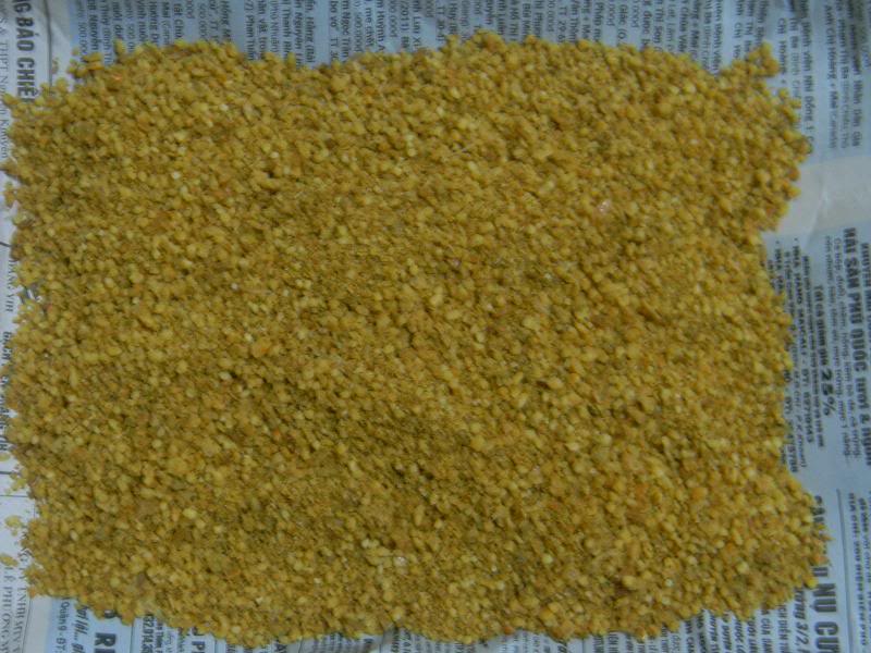 – Rang tấm, gạo bằng chảo dưới lửa nhỏ,khi nào thấy hơi vàng thì bắt chảo xuống. Cho 5 quả trứng vào tấm, rắc đường bột sò vào và trộn đều sau đó đem phơi khô, có thể tấm bị vón cục lại, ta cần bóp nhuyễn ra. Lưu ý: Có nhiều người chỉ sử dụng lòng đỏ của trứng gà nhưng theo quan điểm cá nhân và cũng dựa vào kinh nghiệm của nhiều nghệ nhân nuôi chim Họa Mi thì chúng ta có thể sử dụng tất cả lòng trắng trứng, chim Họa Mi ăn vẫn khoẻ mạnh và còn đẹp mã, bóng lông nữa.