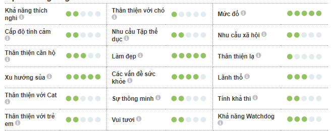 Nhóm giống:  Không thuộc thể thao Chiều cao:  17 đến 20 inch ở vai Trọng lượng:  40 đến 70 pounds Tuổi thọ:  12 đến 15 năm