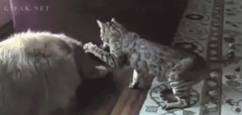 Chó và mèo vốn không hề ưa nhau, tuy nhiên khi những con mèo bắt nạt chó, chúng hung hãn và ra tay quyết đoán hơn nhiều.