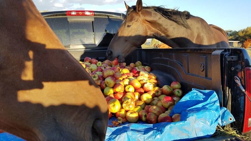 Các nhân viên giữ một mắt đóng trên những con ngựa để đảm bảo họ không ăn quá nhiều hoặc ăn quá nhanh và bị nghẹt thở. Một trong những con ngựa, tên Sarge, cố gắng để được lén lút và giấu một số táo cho sau này cho chính mình. “Ông mất một lúc và đặt nó xuống đất – sau đó có một số khác … Tôi đã tìm ra sau khi ba quả táo và phải mất một đi … nó gần như làm việc,” một trong những nhân viên đã viết trên Facebook.