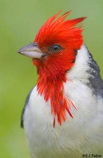 Hình dáng :Điểm đặc biệt của chim là có cái mào đỏ rực như lửa rất đẹp mắt , bộ lông có 2 màu tương phản xanh trắng rất rỏ nét. Khó phân biệt giới tính, nếu để trống mái gần nhau thì trông con mái có sắc vóc nhỏ hơn trống 1 chút.