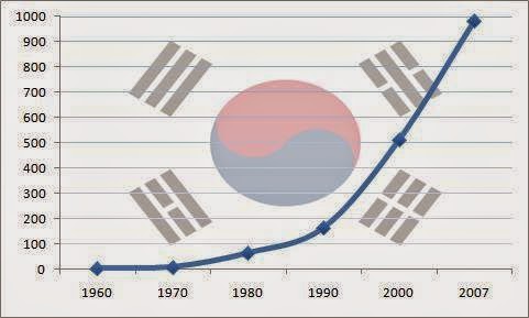 Thập niên 60, Hàn Quốc là 1 trong những nước nghèo đói nhất châu Á. Năm 1968, người Hàn quyết định thay đổi giáo dục bằng cách bê nguyên sách giáo khoa của người Nhật về dịch sang tiếng Hàn và giảng dạy, ngoại trừ các môn xã hội như địa lý, lịch sử và văn học. Lúc đó cũng có nhiều người chỉ trích vì tính sĩ diện của người Hàn Quốc rất cao, lẽ nào lại không tự soạn được một bộ sách giáo khoa. Nhưng họ vẫn quyết tâm thực hiện, vì để có chương trình giáo dục đó, người Nhật đã mất cả trăm năm cải biên từ cách đào tạo của giáo dục phương Tây phù hợp với đặc trưng châu Á, bắt đầu từ thời Minh Trị Thiên Hoàng. Để rút ngắn thời gian, chẳng có cách nào ngoài việc lấy kinh nghiệm của người khác, để còn lo việc khác nữa. Vì Hàn Quốc muốn trở thành một bản sao mới của Nhật, nền kinh tế dựa trên lòng tự hào dân tộc, tính kỷ luật và đạo đức của toàn thể xã hội.