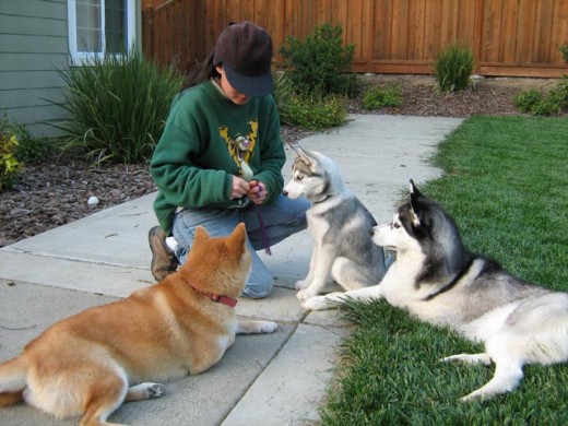 1. Take your dog into a quiet area and tell her to “Sit.”