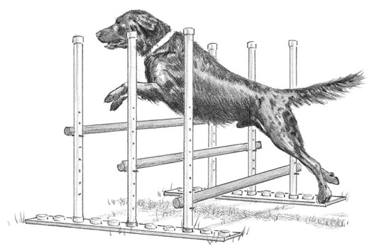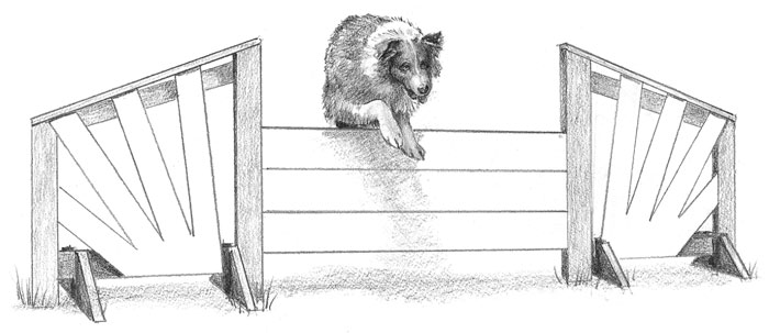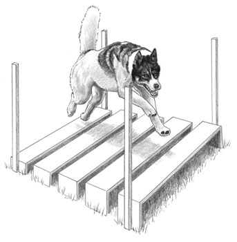 – Spread jump: Multiple bars are arranged to test a dog’s ability to jump high and wide. See Figure 11-2.