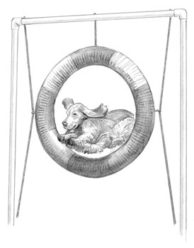 Agility UKC-styleThe United Kennel Club (UKC) has some unique obstacles that aren’t seen in events sponsored by other agility clubs. The UKC’s crawl tunnel simulates the movements of a typical tunnel, but it looks more like a ribcage than a closed chute. The swing plank and sway bridge simulate the moves of the dog walk, but these obstacles differ slightly in that they swing. Whether you compete in UKC events or not, you gain diversity practicing on these obstacles if you can find them! For more information on these UKC obstacles, visit their Web site at www.ukcdogs.com. |