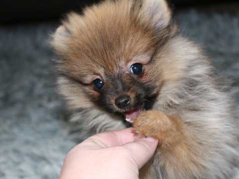 Don’t let your Pom puppy go more than four hours without eating. If that’s not possible (like in the middle of the night), make sure he’s warm, confined, and quiet so he doesn’t use much energy.