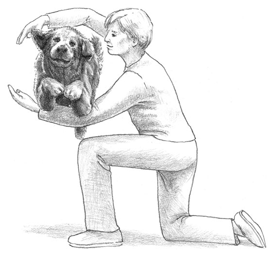 Figure 8-2: You eventually want to be standing up fully when your dog jumps into your arms.