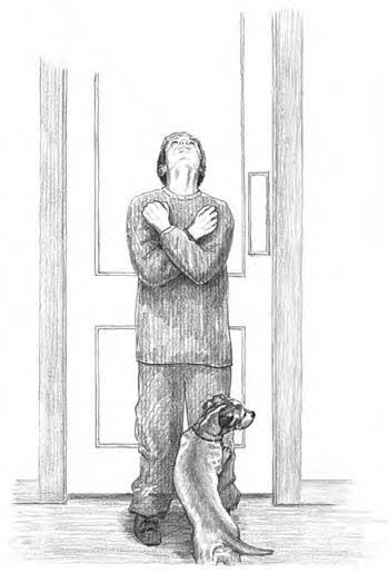 – “It looks like rain”: When the kids come in from school, have them “look for rain” until your puppy calms down — that is, tell them to cross their arms in front of their body and look to the sky (see Figure 8-1). You can also have your kids look for rain when the pup jumps into their laps for attention. This body language will communicate calmly that jumping is an ineffective way to interact.