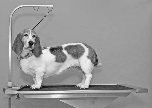 If you invest in a grooming table, I recommend adding a grooming arm and noose (as shown in Figure 3-3). The arm and noose keep your dog centered in one place on the grooming table while you work on him. Cost is about $20 to $40. Warning: Never leave a dog unattended in a grooming noose.