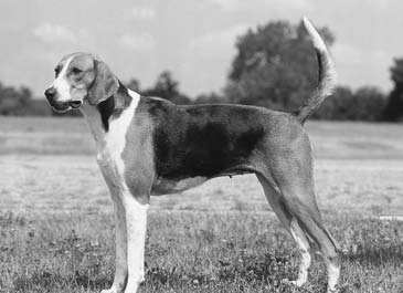 Temperament: Mellow, even tempered, calm; friendly and playful, but reserved with strangers. Strong trailing instincts make training difficult.