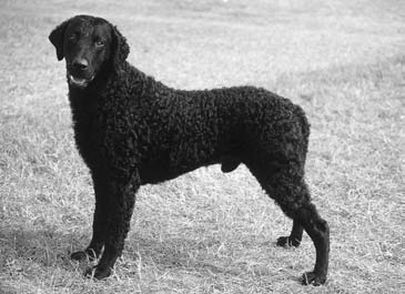 History/Evolution: One of the oldest of the Retrievers, the Curly-Coated Retriever is believed to have roots in such breeds as the English Water Spaniel, a smaller Newfoundland, and the Poodle, from which it gets its tightly curled coat. Developed in England to be a multipurpose hunting Retriever, the Curly is favored for its excellent field ability, endurance, and courage. Unsurpassed in the water, the Curly-Coated makes a fine family companion when challenged with exercise and activity.