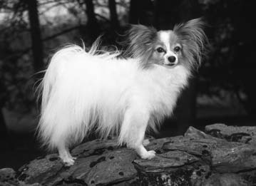 History/Evolution: The dog who became the Papillon started off as the dwarf spaniel of the 16th century. Though its name — French for “butterfly,” for the butterfly effect of dog’s fringed ears — and much of its development can be traced to France, the breed gained a good deal of its popularity in Spain and Italy. Both erect-eared and drop-eared Paps can be born in the same litter and are judged together by the AKC, which first represented the breed in 1935.