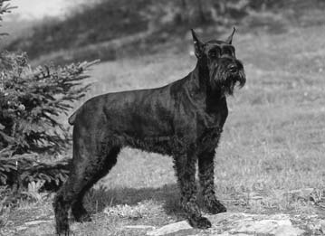 History/Evolution: Developed in Germany, the Giant Schnauzer is joined in the Schnauzer breed by the Miniature and Standard Schnauzers. Through crossings with smooth-coated cattle dogs, sheepdogs, Great Danes, and probably others, the breed developed into a capable cattle and driving dog who could withstand varying weather conditions; butchers and breweries also used them as guard dogs. The intelligent dogs later excelled as trained police dogs during World War I.