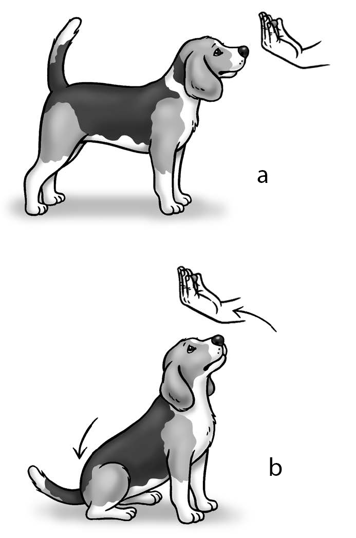 Figure 15-2: Use your hands, your voice, and treats to teach your Beagle to sit.