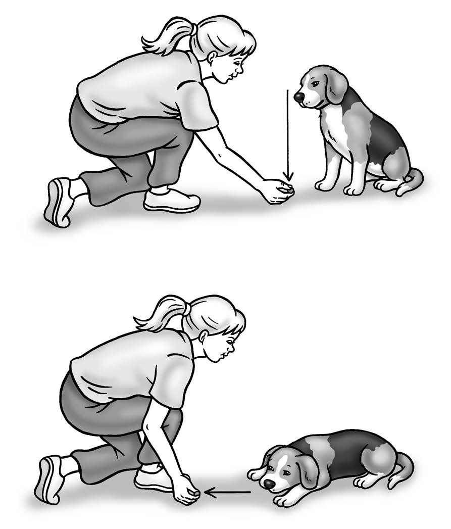 Figure 15-3: Lure your Beagle into a Down position with a treat.