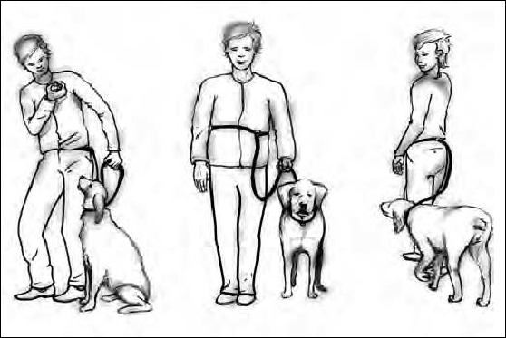 Figure 4-1: Basic directions can help you organize your day. Encourage your dog to sit before giving him anything pleasant. Always lead your dog through the door. He should not leave the home “den” without your accompaniment. Teach your dog to follow your lead.