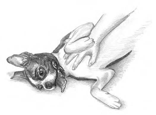 1. Sit in a chair or on the floor, and flip your dog over in your lap so his belly is up, putting him in a submissive position.
