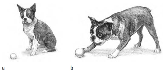 The Sit command (see Figure 11-2) teaches your dog to hold still in a sitting position. A very important lesson in self-control, this command is likely the first one your Boston will learn, and it’s the cornerstone of many to come.