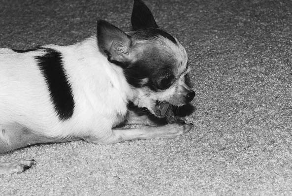 Figure 5-1: She may be pushing 12, but Manchita is still serious about her chew toys.
