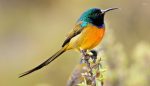 Discosura longicaudus Photo by Robson Czaban (Beija-flores) Common name:racket-tailed coquette (en); bandeirinha (pt); coquette à raquettes (fr); rabudito de raquetas (es); diskuselfe (de)Taxonomy:Order ApodiformesFamily TrochilidaeRange:This South American species is found in two disjunct areas, one from southern Venezuela and the Guyanas south to the Amazon river, and another along the coast of eastern Brazil, from…