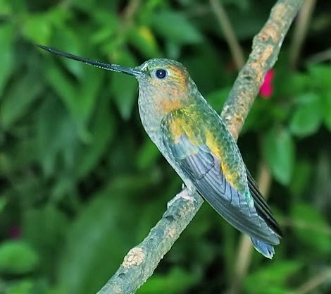 Discosura longicaudus Photo by Robson Czaban (Beija-flores) Common name:racket-tailed coquette (en); bandeirinha (pt); coquette à raquettes (fr); rabudito de raquetas (es); diskuselfe (de)Taxonomy:Order ApodiformesFamily TrochilidaeRange:This South American species is found in two disjunct areas, one from southern Venezuela and the Guyanas south to the Amazon river, and another along the coast of eastern Brazil, from…